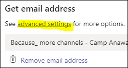 In some cases, you may want to no longer allow people to email a Channel that has previously been assigned an address. Or maybe the address ended up on some spam list and you need to change it to something different. Again, a few clicks and you’ll be set. Just navigate back to the Get email address prompt as you did earlier and select Remove email address to remove it. If you want to change it, simply remove it and then add it back.